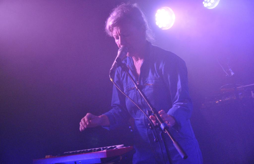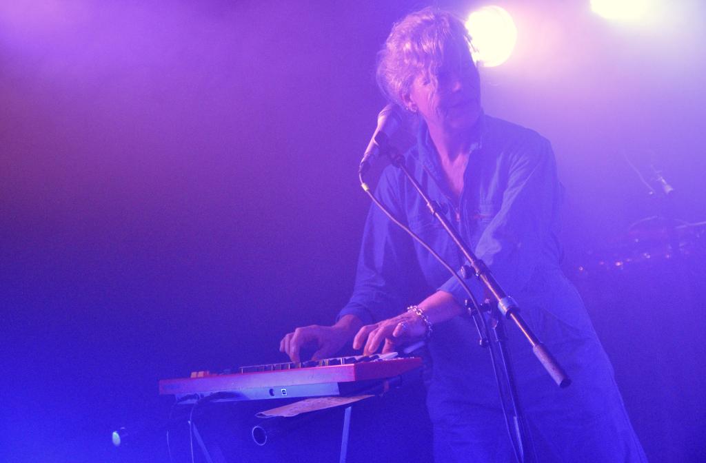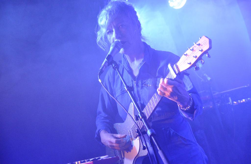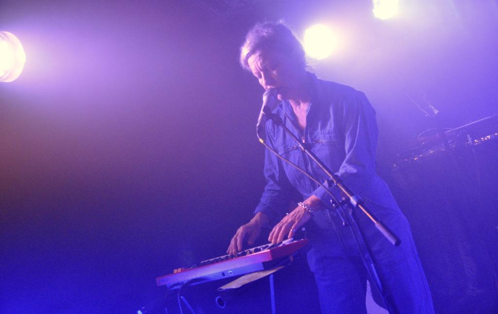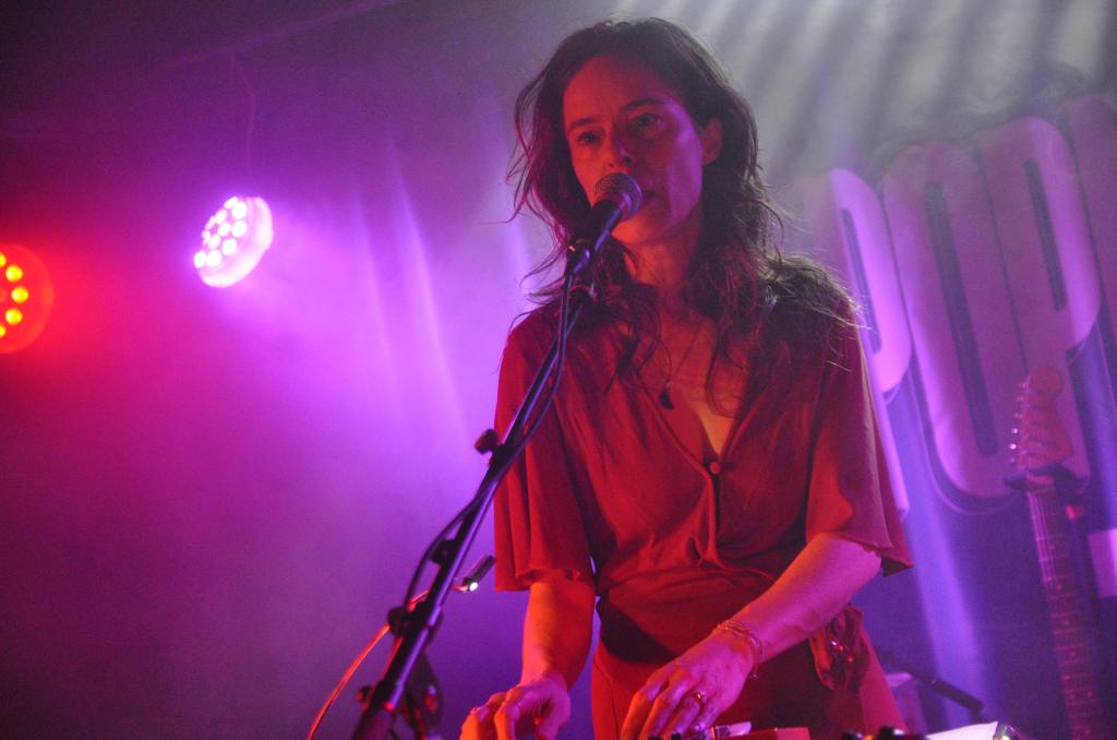 La soirée s’ouvre avec Nina Savry, seule en scène, accompagnée de son synthé. Une silhouette discrète, une présence sobre, mais des morceaux qui captivent immédiatement. Elle déroule une pop électronique tout en clair-obscur, minimaliste et sensible. Sa voix, posée sur des nappes délicates, trace un chemin intime, presque introspectif. Une entrée en matière tout en retenue, qui prépare doucement l’espace pour ce qui va suivre.