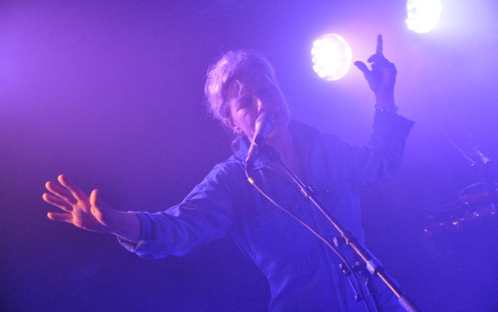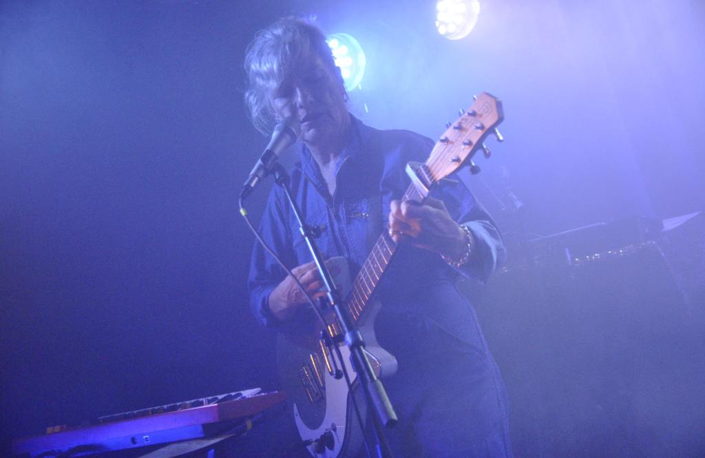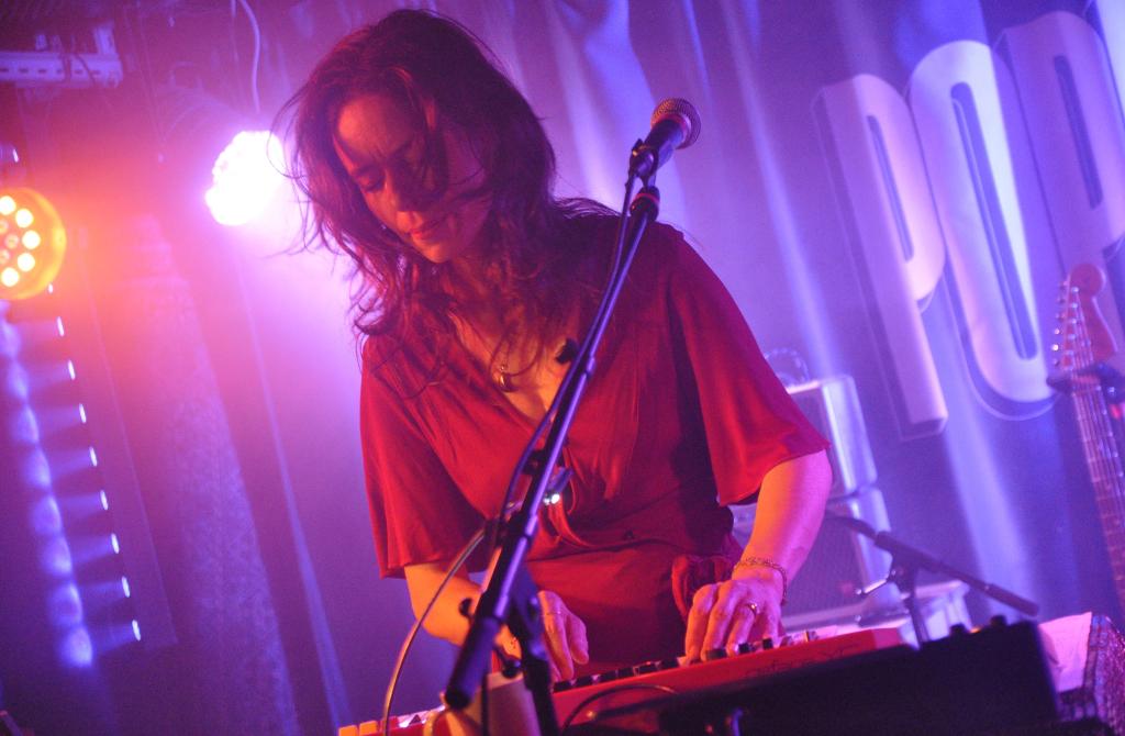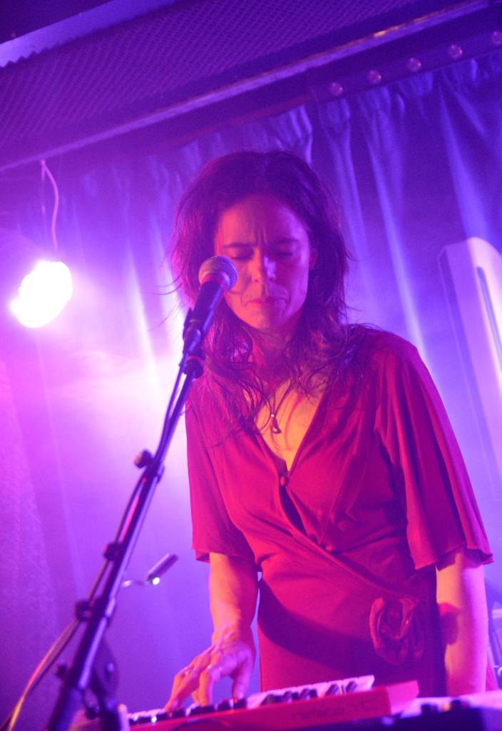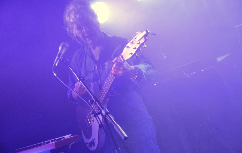 La soirée s’ouvre avec Nina Savry, seule en scène, accompagnée de son synthé. Une silhouette discrète, une présence sobre, mais des morceaux qui captivent immédiatement. Elle déroule une pop électronique tout en clair-obscur, minimaliste et sensible. Sa voix, posée sur des nappes délicates, trace un chemin intime, presque introspectif. Une entrée en matière tout en retenue, qui prépare doucement l’espace pour ce qui va suivre.