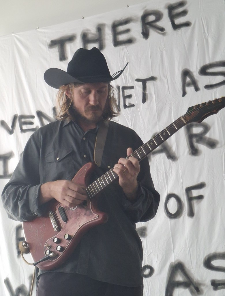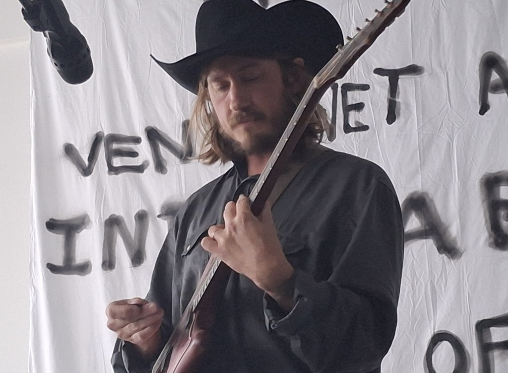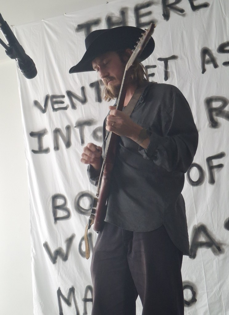 Samedi après-midi, Villa Ribérollle, dans ce coin du 20ᵉ qui bruisse encore de bricolage et d’expérimentations. Kool Musik entre en premier, seul sur scène. Pas de mise en scène, pas d’effet. Juste lui, une guitare et cette nonchalance qui fait partie intégrante de son art. Il joue comme s’il testait des idées devant des amis, avec ce mélange de désinvolture et de fulgurances qui fait sourire autant qu’il intrigue. Des rythmes cassés, des mélodies bancales, mais derrière, une vraie poésie brute, comme un collage sonore monté à vif.