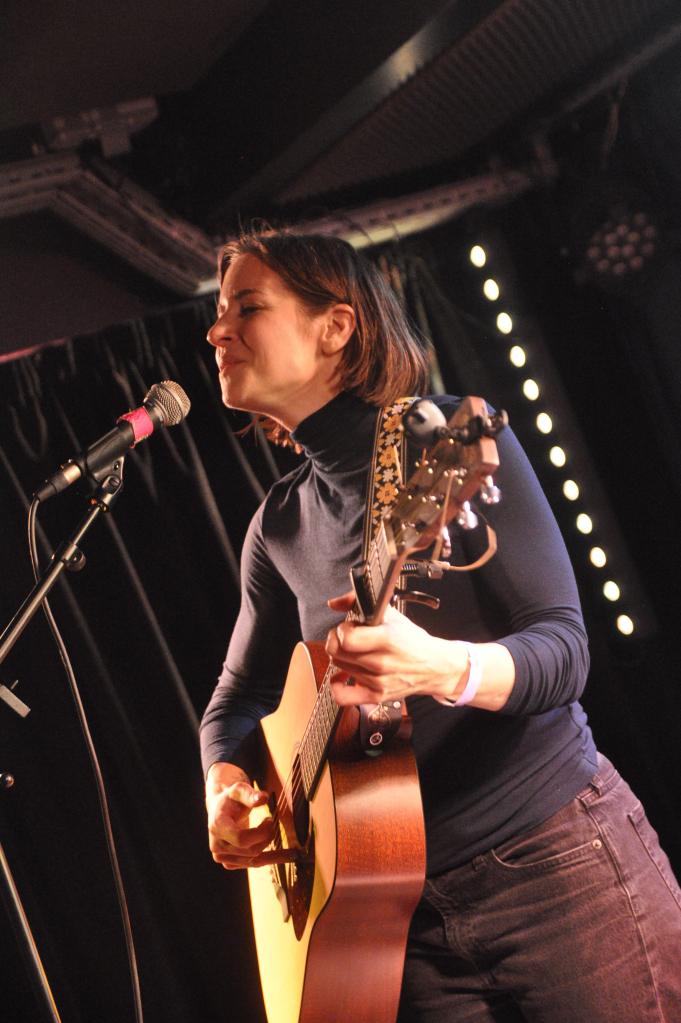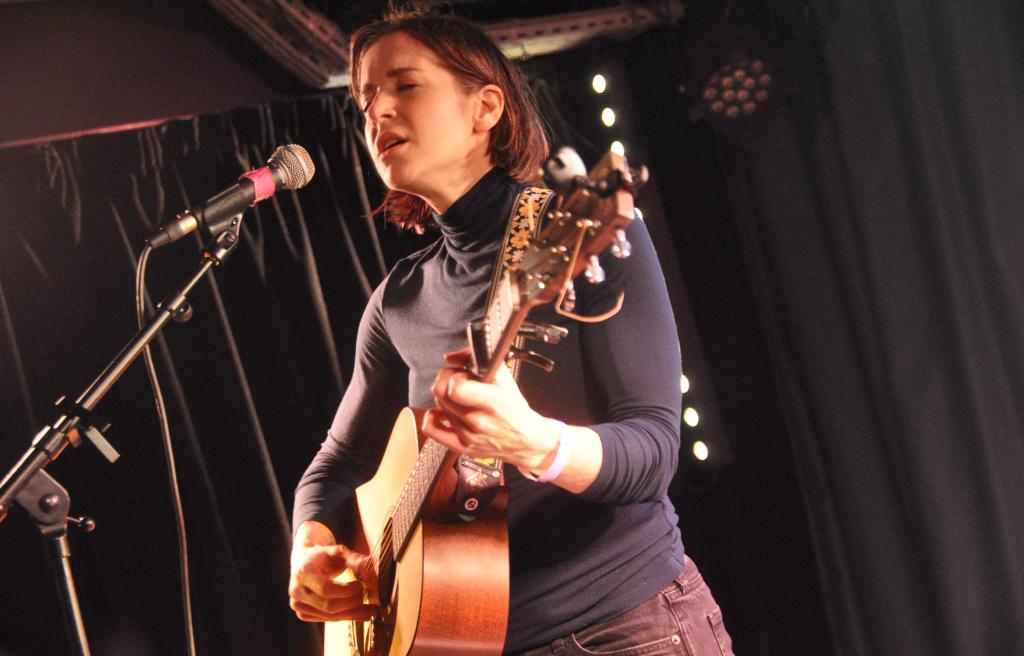 Puis arrive Laura Stevenson, et le Pop Up du Label se transforme en véritable écrin de délicatesse. Sa voix claire et émotive enveloppe l’espace, chaque note résonne avec une grande douceur qui fait chavirer la salle. Son jeu de guitare, ses textes sincères et ses mélodies aériennes créent un moment suspendu où l’on se sent à la fois fragile et pleinement vivant.